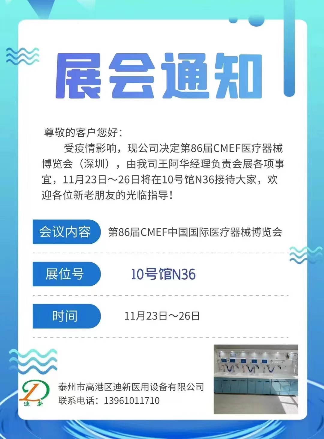 查看詳情尊敬的客戶(hù)您好: 受疫情影響,現(xiàn)公司決定第86屆CMEF醫(yī)療器械博覽會(huì)(深圳),由我司王阿華經(jīng)理負(fù)責(zé)會(huì)展各項(xiàng)事宜,11月23日~26日將在10號(hào)館N36接待大家,歡迎各位新老朋友的光臨指導(dǎo)!......